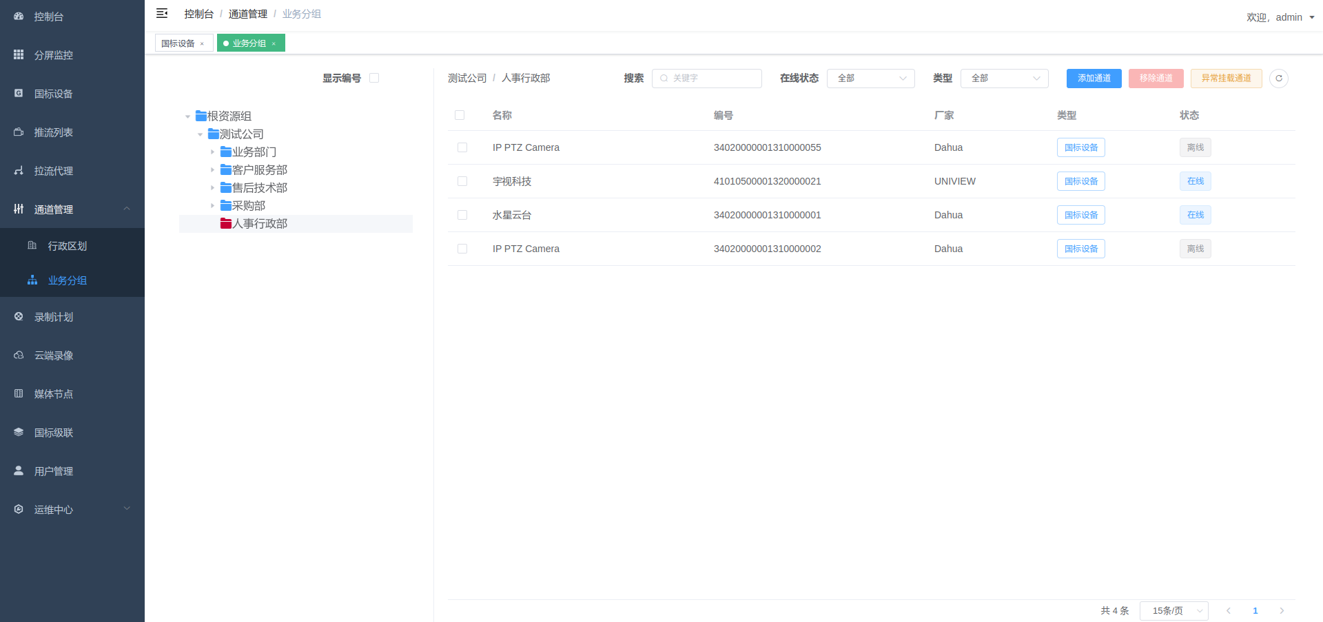 - 支持检索,通道筛选